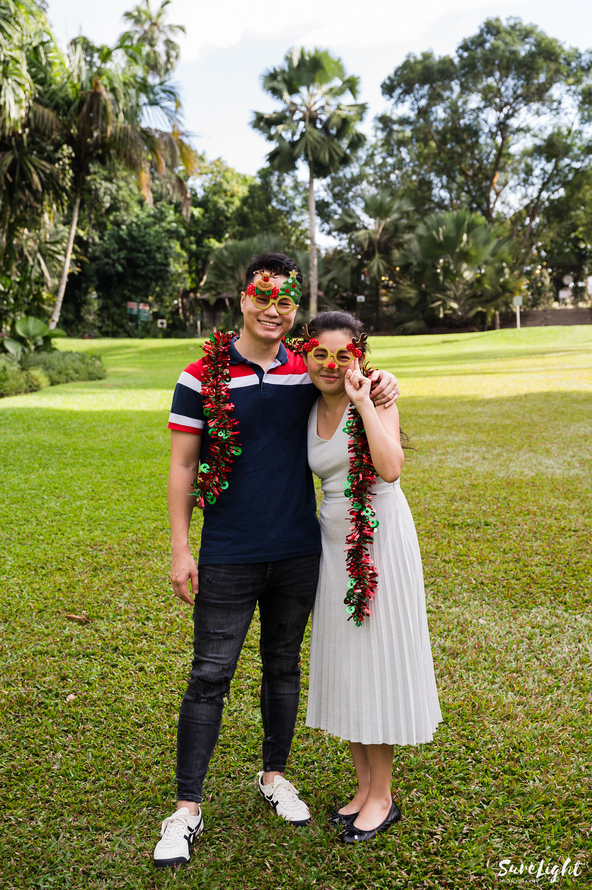A full-on Christmas themed shoot for this family. They initially wanted to do a studio shoot with props but decided to try one at botanics where there were Christmas decor around many Christmas trees. We discussed what to bring and clothing for baby girl and proceeded. I personally had some Christmas hats, headbands and garlands so I offered them as well. This baby girl did not really want to follow our lead, but she was easily enticed by baby puffs, so throughout the shoot, she was rationed a healthy amount for following along. It was comical to see, I couldn't believe it actually worked so well. The parents also had a code name for puffs and called it 'P, U so that baby girl would not understand. Haha jokes aside, I was glad that they got the Christmas themed outdoor shoot they wanted with their precious baby girl! Would recommend this place if you're a family that wants to do the same.